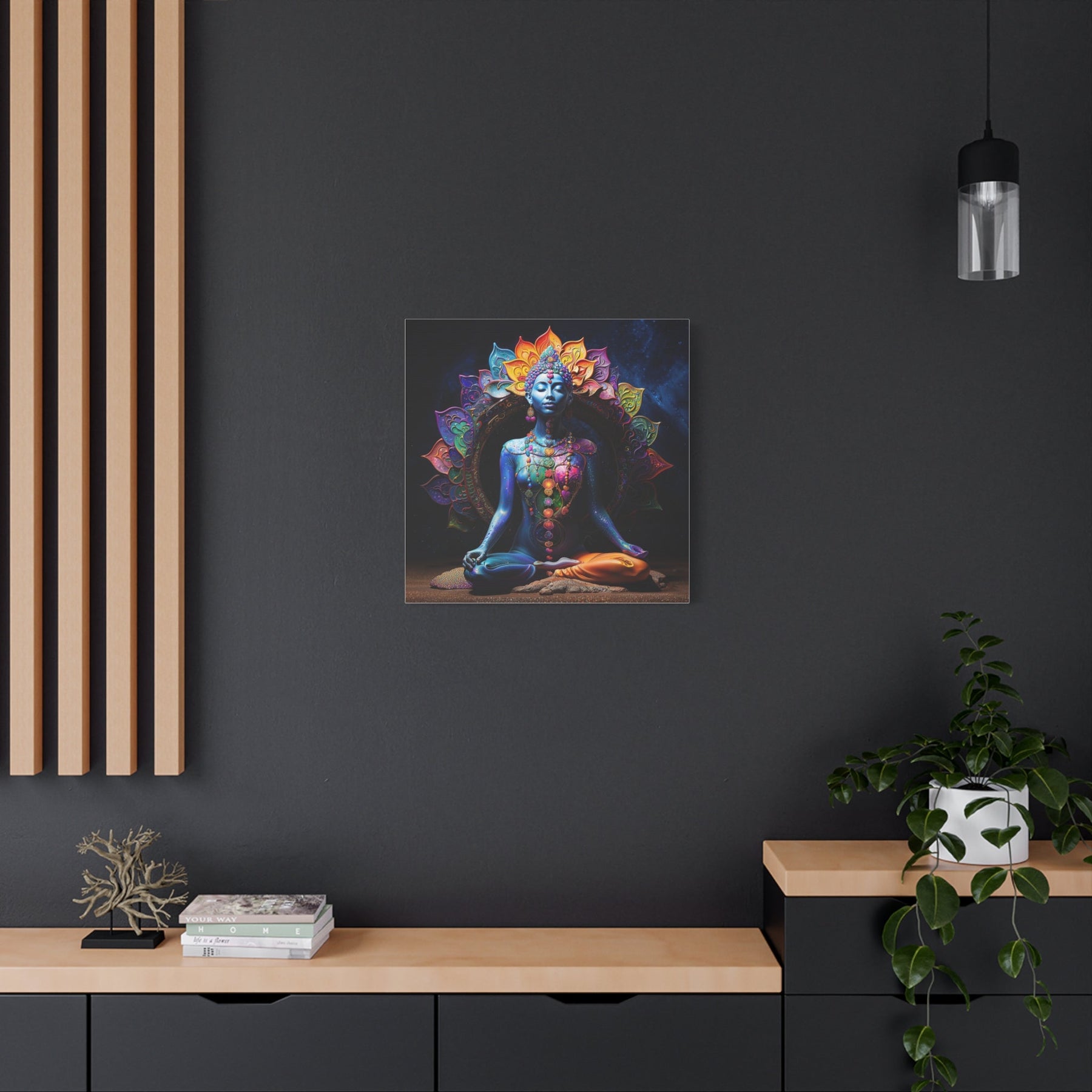 This vibrant and beautiful Stretched Canvas Print brings a sacred message of spiritual awakenings and cosmic connections to life. The highly stylized figure, accented with deep and enriching symbolism, presents a tranquil and enlightened being in perfect meditation. Representing wholeness and unity, its intricate detailing and radiant lotus crown make it the perfect piece for any home, infusing any atmosphere with a touch of serenity and peace. #art #spiritualart #canvasprint #canvasprints #stretchedcanvasprint #homedecor #styleinspo #interiordesign #symbolism #lotuscrown #meditation #enlightenment #hindudeity #cosmicbackdrop #stars #