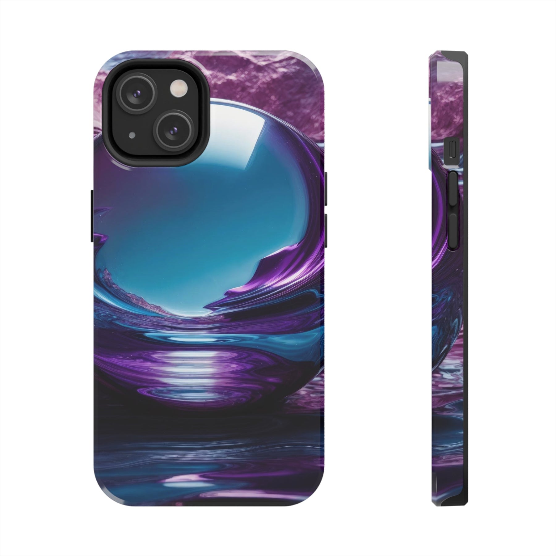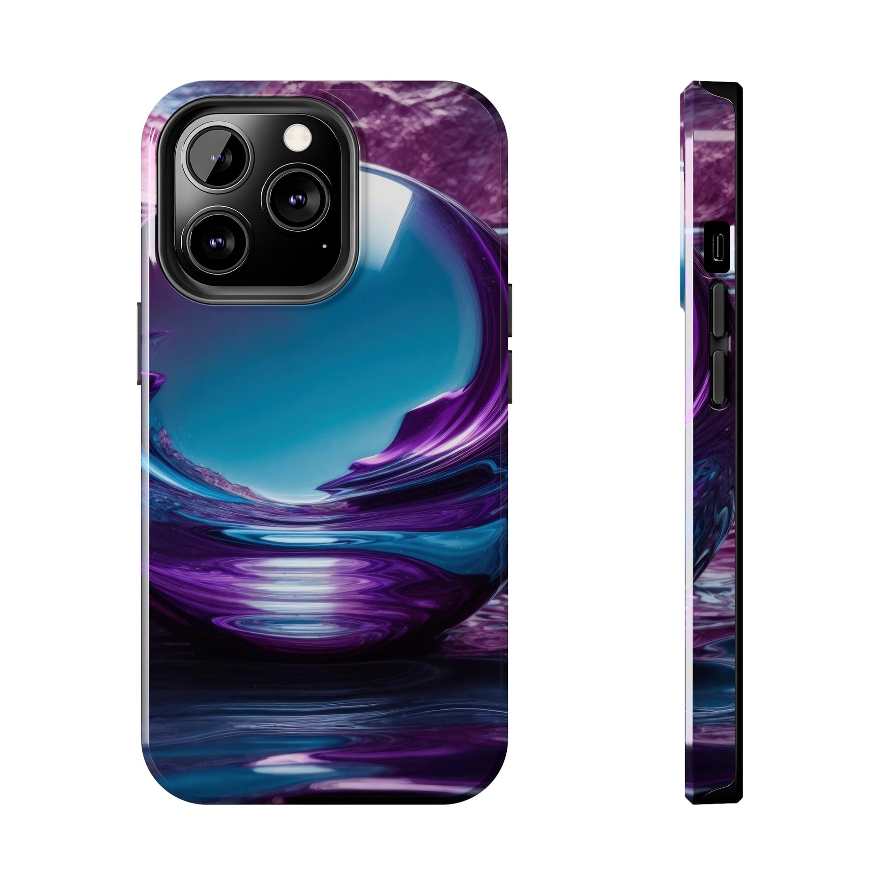 With its reflective and glossy orb, #ToughiPhoneCase is truly one of a kind! It's mesmerizing gradient of purple and blue wraps around the orb like a gradient of serenity, evoking a surreal yet mysterious atmosphere. The backdrop is made of undulating forms reminiscent of liquid, with reflective markings that look like molten glass. Take this stylish and durable case anywhere you go for maximum protection! #PhoneCase #iPhoneAccessory #SmartphoneProtection #CrystalClearView #GlossyCase #ToughProtection #SmartCase #StrongAndSecure #ProtectionOnTheGo #LatestTechnology #iPhoneCaseDesign